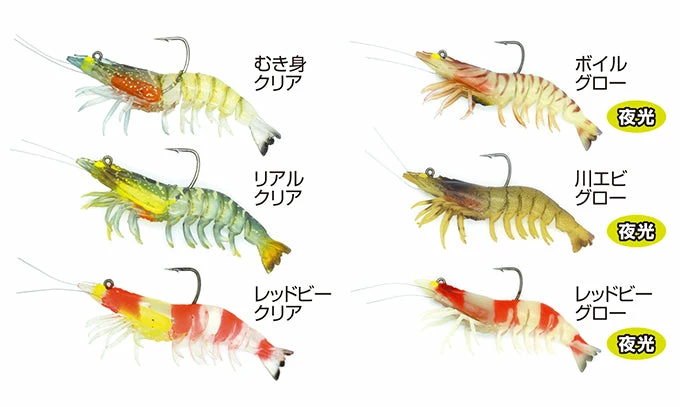 A total of 6 colors are available, including 3 clear colors like raw shrimp and 3 glow colors.
