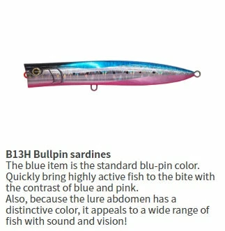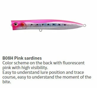 When making the rod action, the posture of Duckdive will keep nearly level due to the weight moving system. After making rod action, the position of normal poppers are not stable. This irregular movement sometimes makes the fish caution. As soon as we make a rod action, the small cup receives the water pressure and generates attractive bubbles. In addition to making bubbles, the moving distance is suppressed due to the water resistance.