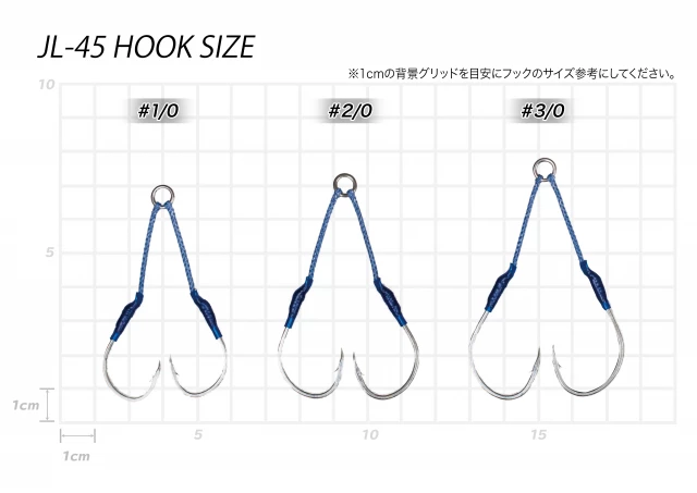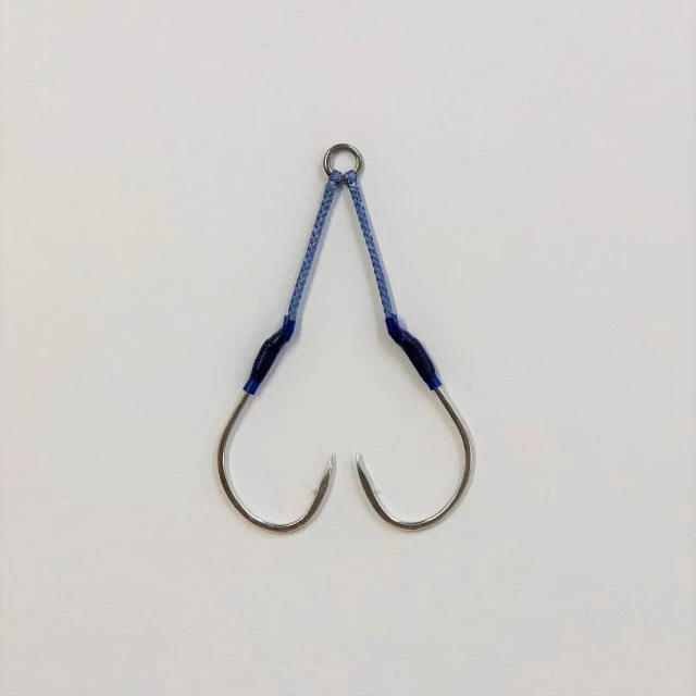 Twin assist hook that is most suitable for middle flesh and blue fish, root fish etc. Make sure the length of the assist line is right and left, catch the hit prey surely and prevent the valley. Although the split ring is set so that the hook faces outward (at the time of shipment), it is also possible to make the hook inward by replacing it on the opposite side. Recommended Jig Weight: 60g ~ (JIGEN light twin hooks for Light jigging)