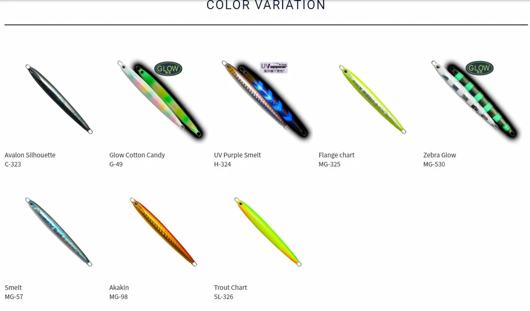 A slobe rat cast long lake shore throw model with a slim silhouette that provides a great response to rod work. We have carefully selected colors that are effective for trout and bass, including smelt, which is the main bait on the lake. Including the non-reflective color that is effective in the field attacked by many anglers, the large trout also includes the proven glow system. We cover a wide range of scenes with a lineup from shallow range compatible weights at the beginning of the season to 20g that can directly hit the target whose range has been lowered during the high water temperature period.