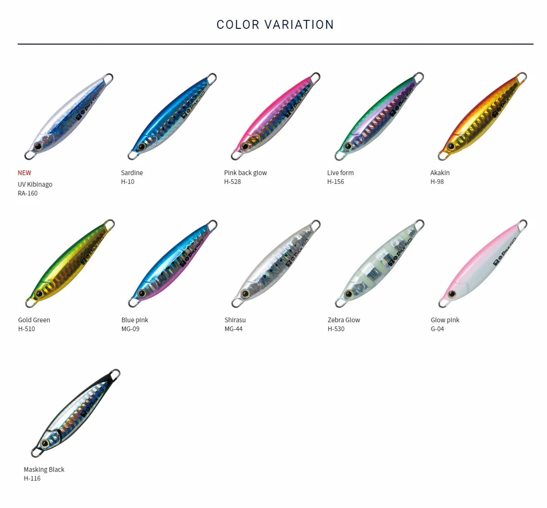 With many achievements, Smelt Daks, which has been supported by many anglers, will be reborn as The Daks in 2018. Despite its compact body that produces a high flight distance, it demonstrates high response that follows rod work. Along with the big swim action that is exhibited by free winding, it induces a bite to various targets. By sharply designing the face, tail, and side edges, we have refined not only flushing when action occurs, but also stable flight attitude. It is a model that thoroughly pursues ease of use in light shore jigging, such as tidal current capture performance brought about by high sync rate.
